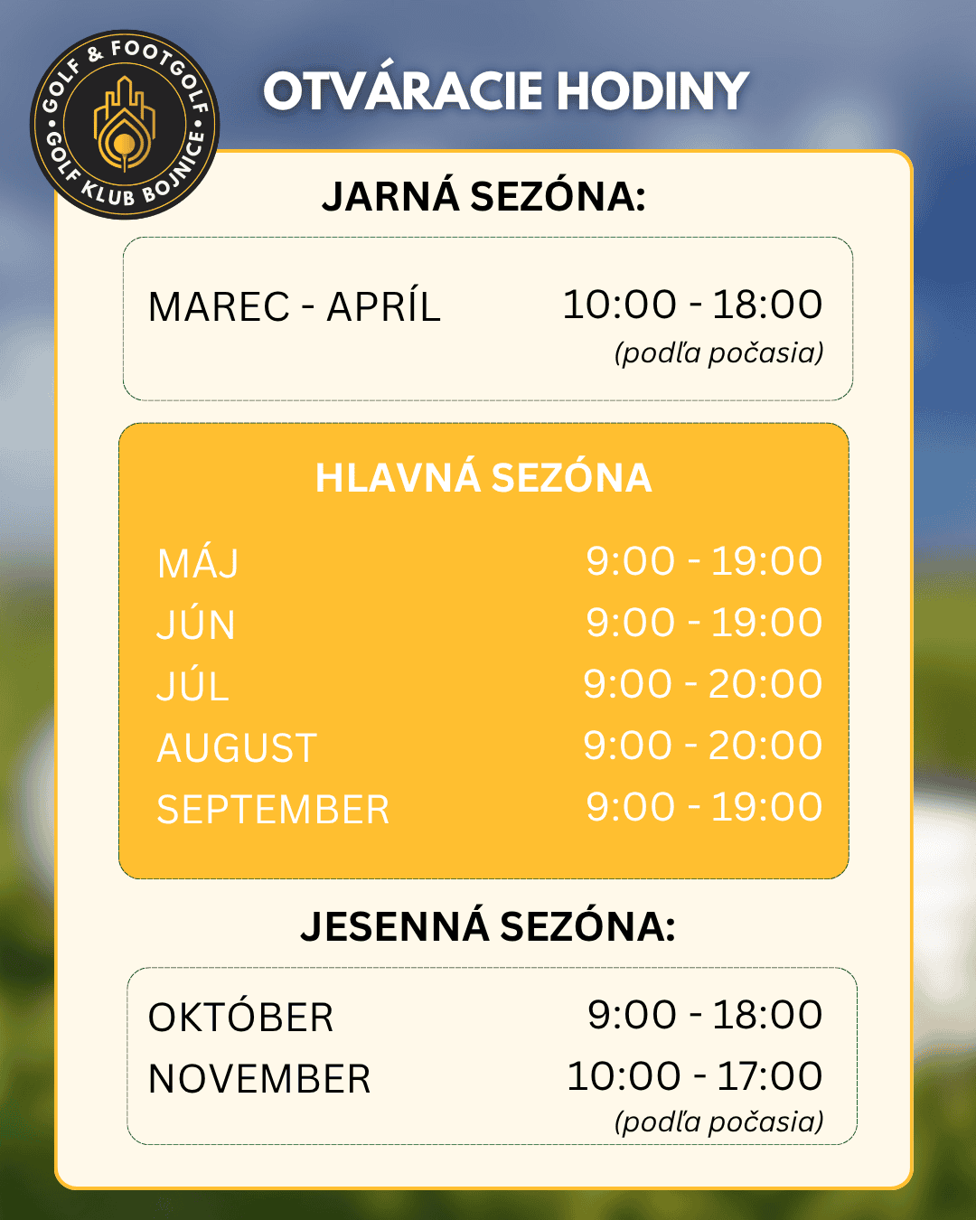 Ihrisko je po zime v procese regenerácie. Greeny sú aktuálne po jarnej údržbe a ich kvalita je dočasne znížená.