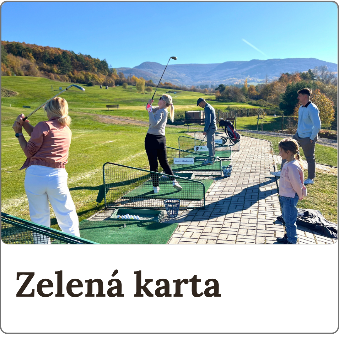 - Zelená karta je základný kurz, po ktorom môžeš hrať golf samostatne. Na prvú návštevu ju nepotrebuješ – tú riešiš až vtedy, keď sa rozhodneš pokračovať.